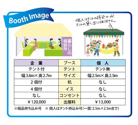企業・団体・自治体の皆さまは必ず企業ブースでお申込みください。個人ブースは法人(団体・自治体含む)以外の方のためのブースとなっています。